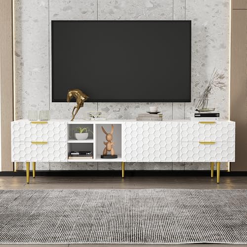 Der moderne TV-Schrank von IDEASY ist ein stilvolles und praktisches Möbelstück für das Wohnzimmer. Mit seinen Maßen von 170×40.3×49.9cm bietet er ausreichend Platz für den Fernseher sowie für verschiedene Multimedia-Geräte und Dekorationsgegenstände. Das TV-Lowboard verfügt über 4 Schubladen, eine Tür, ein vertikales Fach und 2 horizontale Fächer, die für eine optimale Aufbewahrung sorgen.