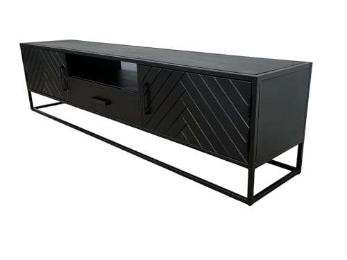Der TV Schrank verfügt über eine praktische Schublade, in der Sie DVDs, Fernbedienungen und andere Kleinigkeiten verstauen können. So haben Sie alles ordentlich und griffbereit verstaut. Das Sideboard ist nicht nur funktional, sondern auch ein echter Hingucker in Ihrem Wohnzimmer. Durch die schlichte schwarze Farbe passt es zu nahezu jedem Einrichtungsstil und lässt sich gut mit anderen Möbeln kombinieren.