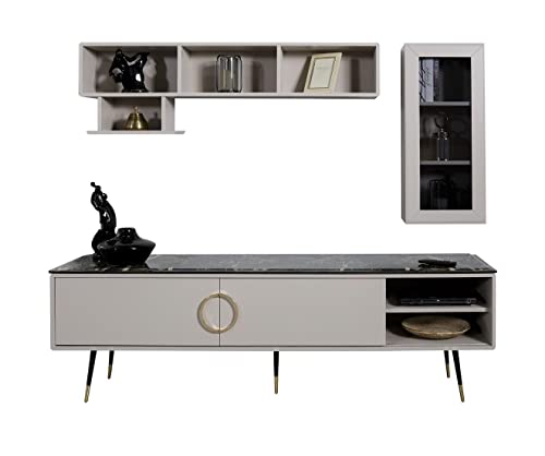 Der TV Schrank Sideboard Lowboard Schrank Luxus Möbel Kommode 205cm besticht durch sein edles Design und hochwertige Verarbeitung. Mit einer Breite von 205cm bietet er ausreichend Stauraum für Fernseher, Multimedia-Geräte, Bücher und Dekorationsartikel. Die Kombination aus verschiedenen Materialien wie Holz, Glas und Metall verleiht dem Möbelstück eine luxuriöse Note und macht es zu einem echten Hingucker.