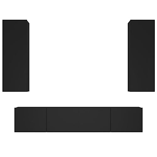 Das Kangmusi 4-TLG. TV-Schrank-Set in Schwarz aus Holzwerkstoff ist eine stilvolle und praktische Lösung für die Aufbewahrung und Präsentation Ihrer Unterhaltungselektronik. Mit seinen modernen Design und hochwertigen Materialien ist dieses Set ein echter Blickfang in Ihrem Wohnzimmer.