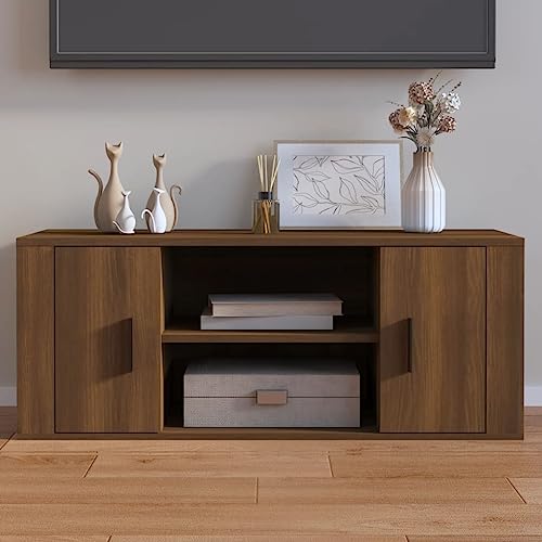 Das Design des TV-Ständers ist schlicht und zeitlos, sodass er sich perfekt in jede Einrichtung einfügt. Die warme Eiche Braun Farbe verleiht dem Möbelstück eine gemütliche Atmosphäre und lässt sich wunderbar mit anderen Holzmöbeln kombinieren.