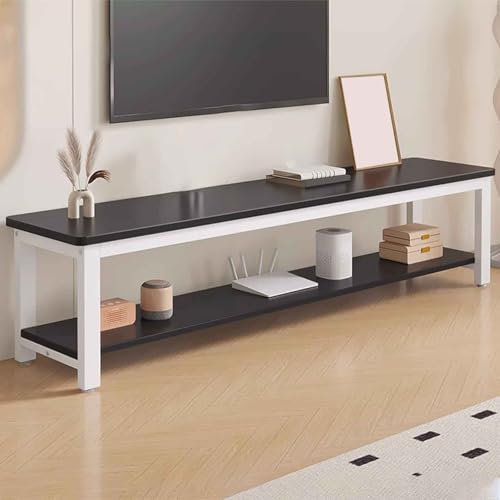 Der TV-Schrank ist in einem eleganten Schwarzton gehalten, der zu nahezu jedem Einrichtungsstil passt. Mit einer Größe von 47,2 x 15,7 Zoll (120 x 35 cm) bietet er genug Platz für einen mittelgroßen Fernseher sowie weitere Geräte wie DVD-Player, Spielkonsolen oder Soundbars. Die zwei Ebenen des Schranks ermöglichen es Ihnen, Ihre Geräte übersichtlich zu organisieren und gleichzeitig Platz für Dekorationselemente wie Bilderrahmen oder Pflanzen zu schaffen.