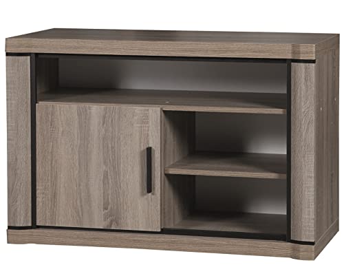 Der TV-Schrank ist aus hochwertigem Trüffel Eiche gefertigt, was ihm nicht nur eine elegante Optik verleiht, sondern auch für eine lange Lebensdauer sorgt. Die Trüffel Eiche ist eine warme und natürliche Holzfarbe, die zu verschiedenen Einrichtungsstilen passt und Ihrem Wohnzimmer eine gemütliche Atmosphäre verleiht.