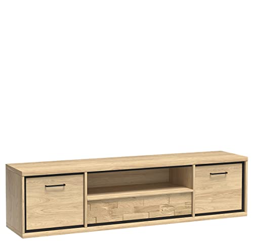 Der Fernsehschrank verfügt über mehrere Fächer und Schubladen, in denen Sie all Ihre technischen Geräte wie DVD-Player, Spielkonsolen oder Receiver verstauen können. Auch DVDs, CDs und Bücher finden hier ihren Platz. Durch die praktische Kabelführung bleiben Ihre Kabel ordentlich verstaut und sorgen für eine aufgeräumte Optik.