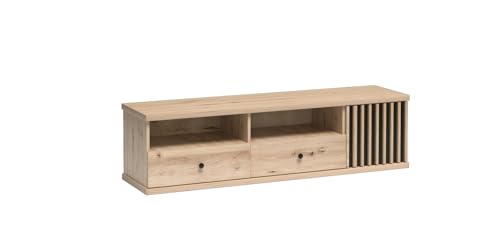 Das TV-Lowboard besticht durch sein modernes Design und seine hochwertige Verarbeitung. Es verfügt über eine Tür und zwei Schubkästen, die ausreichend Stauraum für DVDs, Spielekonsolen, Fernbedienungen und andere Utensilien bieten. Dank seiner kompakten Abmessungen passt das Lowboard auch in kleinere Wohnzimmer und lässt sich gut mit anderen Möbelstücken kombinieren.