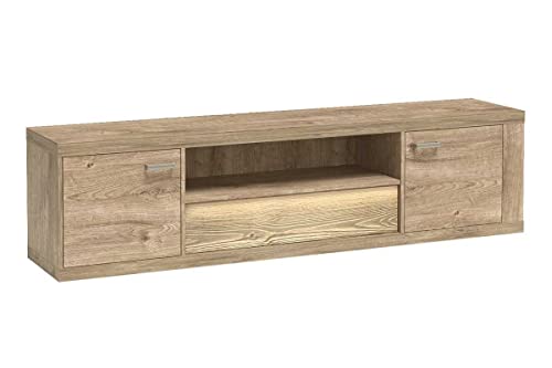 Die RTV Kommode TV-Schrank von Möbel Gorecki misst beeindruckende 195,5 cm in der Länge und bietet somit genügend Platz für Ihren Fernseher sowie weitere Multimedia-Geräte. Durch die großzügige Oberfläche können Sie problemlos Ihren Fernseher platzieren und haben gleichzeitig genügend Stauraum für DVD-Player, Spielkonsolen und andere Geräte. Die Kommode verfügt zudem über eine geräumige Schublade, in der Sie DVDs, CDs oder andere Kleinigkeiten verstauen können.