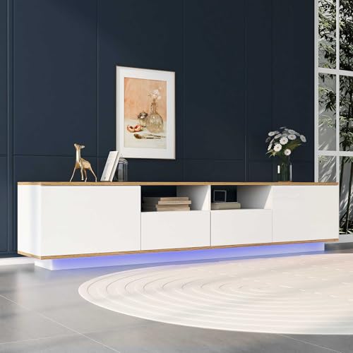 Das NIUAWASA LED Lowboard ist ein moderner TV-Ständer, der mit seinem Industrial Design und der weißen Farbe ein echter Hingucker in jedem Wohnzimmer ist. Mit einer Größe von 180x40x50cm bietet dieses TV Board genügend Platz für Fernseher bis zu 80 Zoll. Doch nicht nur die Größe überzeugt, auch die hochwertige Verarbeitung und das durchdachte Design machen dieses Möbelstück zu einem Must-Have für jeden Wohnraum.