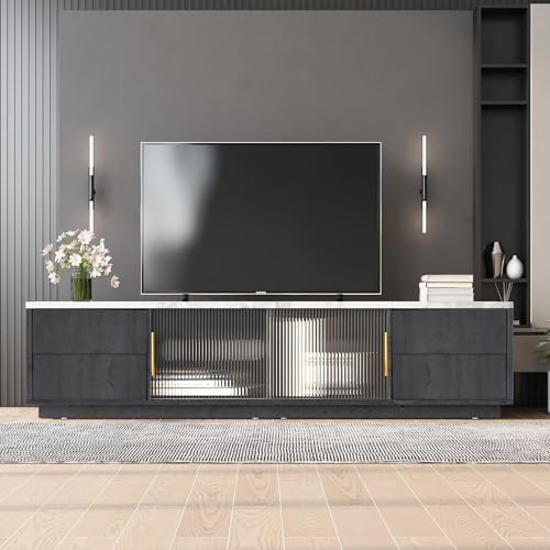 Der NQSLDM TV-Schrank ist die perfekte Ergänzung für Ihr Wohnzimmer oder Schlafzimmer, wenn Sie auf der Suche nach einem stilvollen und funktionalen TV-Lowboard für Ihren Fernseher unter 70 Zoll sind. Dieses elegante Möbelstück verfügt über eine marmorierte Tischplatte, die ihm einen luxuriösen Touch verleiht und es zu einem echten Blickfang in jedem Raum macht.