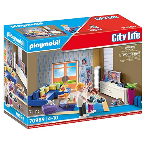 PLAYMOBIL City Life 70989 Wohnzimmer ist ein fantastisches Spielzeug für Kinder ab 4 Jahren, das stundenlangen Spielspaß bietet. Mit realistischen Details und einem beeindruckenden Lichteffekt ist dieses Set perfekt, um die Fantasie der Kinder anzuregen und ihre Kreativität zu fördern.