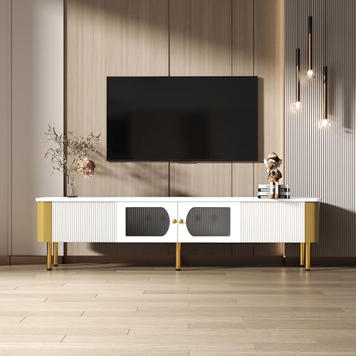 Dank seiner hochwertigen Verarbeitung und Materialien ist der RanRan TV-Schrank nicht nur optisch ansprechend, sondern auch langlebig und robust. Die goldenen Griffe und Beine sind aus hochwertigem Metall gefertigt und sorgen für Stabilität und Haltbarkeit. Die speziell geformten Türverkleidungen bestehen aus robustem Holz und sind in einem ansprechenden Design gestaltet.