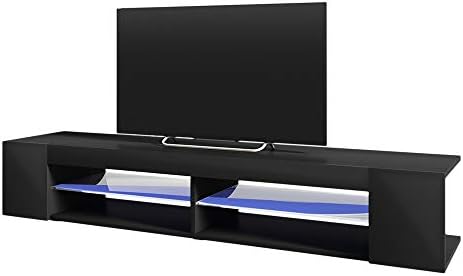 Das TV-Lowboard ist 180 cm breit, was ausreichend Platz für einen großen Fernseher bietet. Die LED-Beleuchtung sorgt für eine stimmungsvolle Atmosphäre und kann je nach Bedarf ein- und ausgeschaltet werden. Die integrierten Fächer bieten ausreichend Stauraum für DVD-Player, Spielkonsolen, DVDs und andere Multimedia-Geräte.
