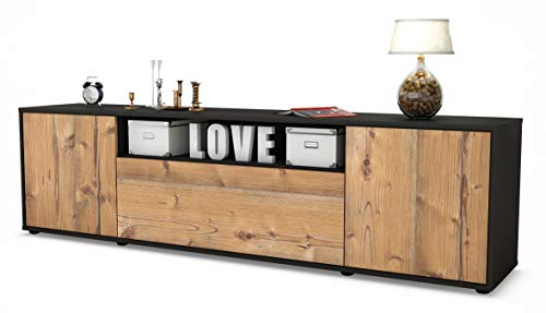 Der Korpus des TV-Schranks ist in einem eleganten anthrazitfarbenen Mattton gehalten, was ihm ein zeitloses und edles Aussehen verleiht. Die Front des Schranks ist in Holz-Design Pinie gehalten, was einen schönen Kontrast zum dunklen Korpus bildet und dem Möbelstück eine natürliche und gemütliche Ausstrahlung verleiht. Diese Kombination aus modernem und rustikalem Design macht den TV-Schrank zu einem vielseitigen Möbelstück, das zu verschiedenen Einrichtungsstilen passt.