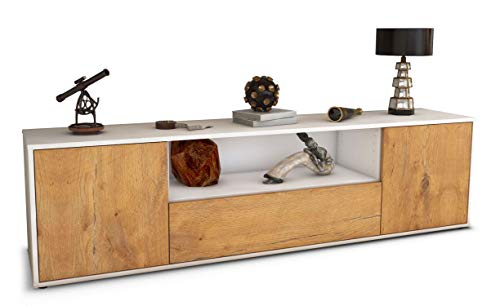 Der TV Schrank Lowboard Maximilian ist ein Möbelstück, das nicht nur funktional ist, sondern auch ein echter Blickfang in jedem Wohnzimmer. Mit seinen Maßen von 180x49x35cm bietet er ausreichend Stauraum für TV-Geräte, Spielekonsolen, DVDs und vieles mehr. Der Korpus in anthrazit matt verleiht dem Schrank ein modernes und zeitloses Design, das sich nahtlos in jede Wohnzimmer-Einrichtung einfügt. Die Front in Holz-Design Eiche sorgt für eine warme und gemütliche Atmosphäre, die zum Entspannen und Genießen einlädt.
