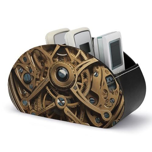 STVNKML Coole Steampunk-Getriebe-Fernbedienungshalter, Leder, TV-Fernbedienungs-Caddy, Desktop-Organizer, 5-Schlitz-Aufbewahrungshalter für TV/DVD/Zubehör, stilvolle Schreibtischdekoration für
