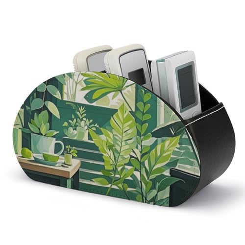 Der STVNKML Dunkelgrüner und grüner Fernbedienungshalter ist ein stilvoller und praktischer Desktop-Organizer, der eine elegante Lösung für die Aufbewahrung Ihrer Fernbedienungen und anderer TV-Zubehörteile bietet. Dieser hochwertige Leder-TV-Fernbedienungs-Caddy verfügt über fünf Schlitze, in denen Sie Ihre Fernbedienungen, DVD-Player und andere Zubehörteile sicher aufbewahren können. Mit seinem eleganten Design und seiner hochwertigen Verarbeitung ist dieser Fernbedienungshalter nicht nur funktional, sondern auch eine stilvolle Schreibtischdekoration.