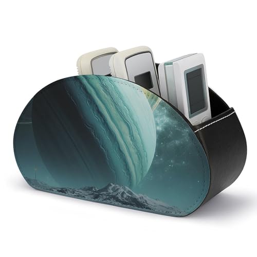 Die STVNKML Uranus Fernbedienungshalter ist ein eleganter und praktischer Organizer, der dafür sorgt, dass Ihre Fernbedienungen immer griffbereit sind. Dieser TV-Fernbedienungs-Caddy besteht aus hochwertigem Leder und bietet Ihnen fünf verschiedene Fächer, um Ihre Fernbedienungen und andere Zubehörteile sicher aufzubewahren.