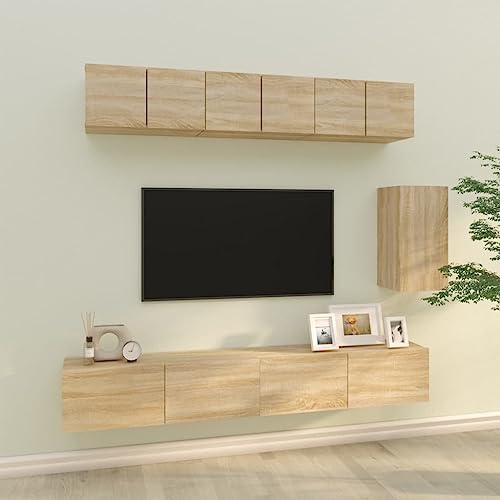 Das Sufrk 6-TLG. TV-Schrank-Set ist eine moderne und stilvolle Ergänzung für jedes Wohnzimmer. Das Set besteht aus einer TV-Kommode, einem TV-Tisch und einem TV-Lowboard, alle aus hochwertigem Sonoma-Eiche Holzwerkstoff gefertigt. Diese Möbelstücke sind nicht nur optisch ansprechend, sondern auch äußerst funktional und praktisch.
