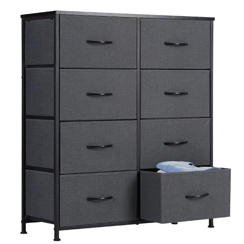 Die Sweetcrispy Kommode für Schlafzimmer ist ein vielseitiges Möbelstück, das nicht nur als Schrank oder TV-Stand genutzt werden kann, sondern auch als praktische Aufbewahrungslösung in Wohn- und Kinderzimmern. Mit ihren breiten Schubladen und den 8 Stoffschubladen mit Griffen bietet sie ausreichend Platz für Kleidung, Accessoires, Bücher oder Spielzeug. Die Schubladen aus Stoff sorgen für eine angenehme Haptik und verleihen der Kommode einen modernen Look.