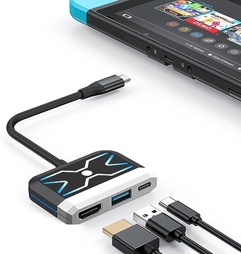 Die Switch Dock für Nintendo Switch OLED ist eine praktische 3-in-1 Switch TV Adapter, die mit vielen nützlichen Funktionen ausgestattet ist. Mit einem 4K HDMI-Anschluss, einem USB 3.0 Port und einem Typ C 100W Ladeanschluss bietet diese tragbare Switch Dockingstation eine Vielzahl von Möglichkeiten, um das Spielerlebnis zu verbessern und die Konnektivität zu maximieren. Darüber hinaus ist die Switch Dock auch mit Samsung Dex S23 und MacBook kompatibel, was sie zu einer vielseitigen Lösung für unterwegs macht.