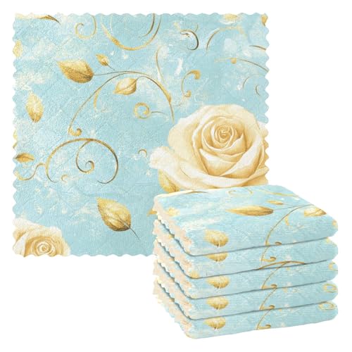 SyXIOP Roses Golden Leaves Pastell Retro Reinigung Mikrofaser Geschirrtuch Geschirrtücher für Küche dekoratives Zubehör farbige Toallas Para Cocina Decoracion 27,9 x 27,9 cm 6 Stück sind die perfekte Ergänzung für jede Küche. Diese hochwertigen Mikrofaser Geschirrtücher sind nicht nur funktional, sondern auch äußerst dekorativ und bringen einen Hauch von Retro-Charme in Ihren Küchenbereich.
