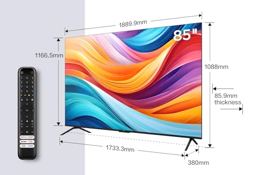 Wenn Sie auf der Suche nach einem hochwertigen und leistungsstarken Fernseher sind, der Ihr Wohnzimmer in ein Heimkino verwandelt, dann ist der TCL 85T7B die perfekte Wahl. Genießen Sie gestochen scharfe Bilder, beeindruckenden Sound und grenzenlose Unterhaltung mit diesem erstklassigen Gerät.