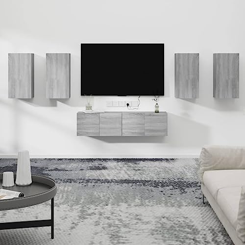 TEKEET Home Furniture bietet mit dem 6-teiligen TV-Schrank-Set aus Holz in Sonoma-Optik eine stilvolle und praktische Lösung für die Unterbringung von Fernsehgerät, Multimedia-Equipment und Dekorationselementen im Wohnzimmer. Das Set besticht durch seine hochwertige Verarbeitung, das ansprechende Design und die vielseitigen Stellmöglichkeiten.