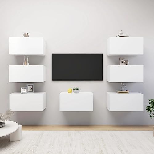 Die 7-teiligen TV-Schränke sind in einem strahlenden Weiß gehalten, was ihnen ein zeitloses und edles Aussehen verleiht. Mit ihren Maßen von 30,5 x 30 x 60 cm bieten sie ausreichend Platz für Fernseher bis zu einer Größe von 60 Zoll sowie für weitere Geräte wie DVD-Player, Spielkonsolen oder Receiver. Dank ihres Holzwerkstoffmaterials sind die Schränke stabil und langlebig und sorgen somit für langanhaltende Freude.