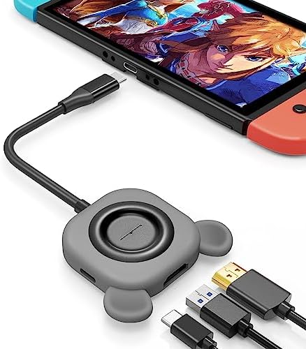 Der Tendak USB Typ C auf HDMI Adapter für Switch Süßer Bär 3 in 1 USB-C Hub ist ein vielseitiges und praktisches Zubehör für Nintendo Switch/Switch OLED, MacBook Pro, Samsung S22 und Huawei Mate 30. Mit diesem Adapter können Sie Ihr Gerät mit Leichtigkeit mit einem HDMI-fähigen Monitor, Fernseher oder Projektor verbinden und hochauflösende 4K-Bilder genießen.