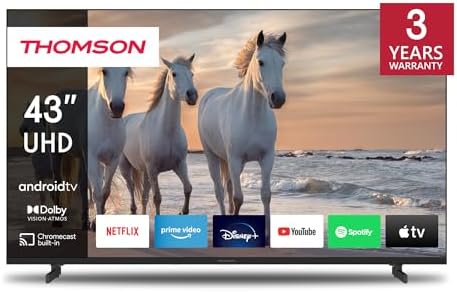 Insgesamt ist der Thomson 43 Zoll UHD Fernseher eine ausgezeichnete Wahl für alle, die auf der Suche nach einem hochwertigen und vielseitigen Gerät sind. Mit seiner beeindruckenden Bildqualität, den smarten Funktionen und der einfachen Bedienbarkeit bietet er ein erstklassiges Entertainment-Erlebnis für die ganze Familie. Gönnen Sie sich mit dem Thomson 43 Zoll Fernseher ein Stück Luxus für Ihr Zuhause und tauchen Sie ein in die faszinierende Welt des modernen Fernsehens.
