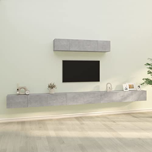 Der THOYTOUI 6-TLG. TV-Schrank ist ein modernes und praktisches Möbelstück, das sich ideal für die Einrichtung von Küche, Wohnstube, Schlafzimmer oder Wohnung eignet. Das Set besteht aus einem TV-Schrank, einer TV Bank und einem TV Lowboard, die alle in einem ansprechenden Betongrau gehalten sind und aus hochwertigem Holzwerkstoff gefertigt wurden.