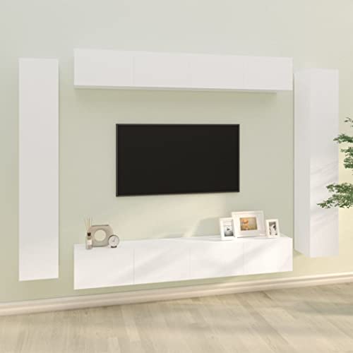 Insgesamt bietet das Toshilian 8-TLG. TV-Schrank-Set in Weiß Holzwerkstoff eine praktische und attraktive Lösung für die Aufbewahrung und Präsentation Ihrer Multimedia-Geräte. Mit seinem modernen Design, hochwertigen Materialien und flexiblen Aufbaumöglichkeiten ist dieses Möbelstück eine Bereicherung für jedes Wohnzimmer.