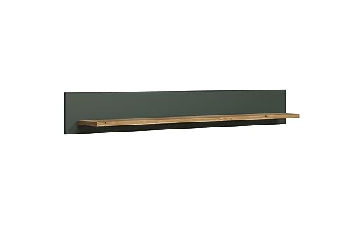 Das Wandboard bietet nicht nur praktischen Stauraum, sondern dient auch als dekoratives Element in jedem Raum. Durch die Kombination aus Tannengrün und Evoke Eiche verleiht es dem Raum eine gemütliche und einladende Atmosphäre. Das schlichte Design und die klaren Linien des Wandregals lassen es zu einem vielseitigen Möbelstück werden, das sich harmonisch in jeden Raum integrieren lässt.