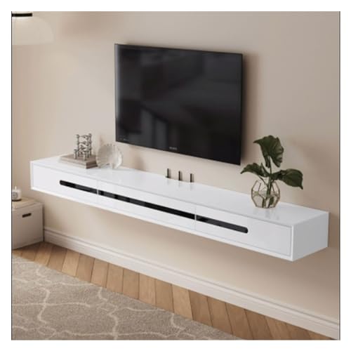 Insgesamt ist ein TV Board hängend Wandmontierter schwimmender TV-Ständer aus Holz eine praktische und schöne Lösung für die Aufbewahrung und Präsentation deines Fernsehers und anderer Unterhaltungselektronik. Mit Lagerschränken, Regalen und Kabellöchern bietet der TV-Ständer nicht nur eine ästhetische, sondern auch eine funktionelle Lösung für dein Zuhause.