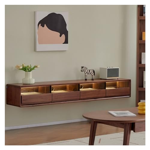 Ein TV Lowboard Hängend ist eine moderne und stilvolle Alternative zu herkömmlichen TV-Ständern. Der schwimmende TV-Ständer aus Walnussholz wirkt besonders edel und schafft eine elegante Atmosphäre in jedem Wohnzimmer. Mit seinen 4 Türen bietet er ausreichend Stauraum für DVD-Player, Spielkonsolen und weitere Unterhaltungsmedien.