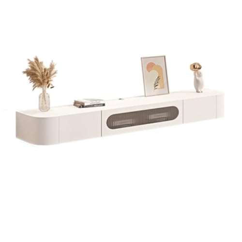 Der TV-Schrank hängend ist in einem eleganten Weiß gehalten, was zu nahezu jedem Einrichtungsstil passt. Das hochwertige Holz und die Glastür verleihen dem Möbelstück eine edle Optik. Dank seiner schwebenden Konstruktion wirkt das Entertainment-Center leicht und luftig, was Ihren Raum größer und offener wirken lässt.
