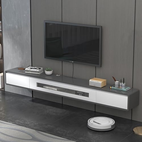 Ein hängender TV-Schrank im schlichten Stil ist eine moderne und platzsparende Lösung für die Aufbewahrung Ihres Fernsehers und anderer Multimedia-Geräte. Dieser schwebende TV-Ständer wird direkt an der Wand montiert, was nicht nur für ein sauberes und aufgeräumtes Erscheinungsbild sorgt, sondern auch den Boden frei von sperrigen Möbelstücken hält.