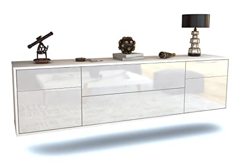 Wenn Sie auf der Suche nach einem TV Schrank sind, der nicht nur optisch ansprechend ist, sondern auch mit praktischen Funktionen und hochwertiger Verarbeitung überzeugt, dann ist das TV Schrank Lowboard hängend – Erlangen – Korpus Weiss matt – Front Hochglanz Design Weiß- (180x49x35cm) – Push to Open Technik & hochwertigen Leichtlaufschienen – Made in Germany die ideale Wahl für Sie. Mit diesem Möbelstück holen Sie sich ein Stück deutsche Handwerkskunst und Qualität in Ihr Zuhause.