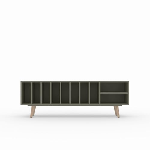 Das skandinavische Design des TV Schranks „SILENE“ zeichnet sich durch klare Linien, schlichte Formen und natürliche Materialien aus. Das Sideboard besteht aus hochwertigem Vinyl und verfügt über ein integriertes Regal für Ihren Plattenspieler. So können Sie Ihre Lieblingsmusik ganz bequem und stilvoll abspielen.