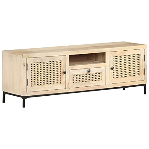 Ein beliebter TV-Schrank, der sowohl funktional als auch ästhetisch ansprechend ist, ist der TV-Schrank aus massivem Mangoholz und Naturrohr. Mit Maßen von 120x30x40 cm bietet dieser TV-Schrank ausreichend Platz für einen mittelgroßen Fernseher sowie für zusätzliche Geräte und Zubehör.