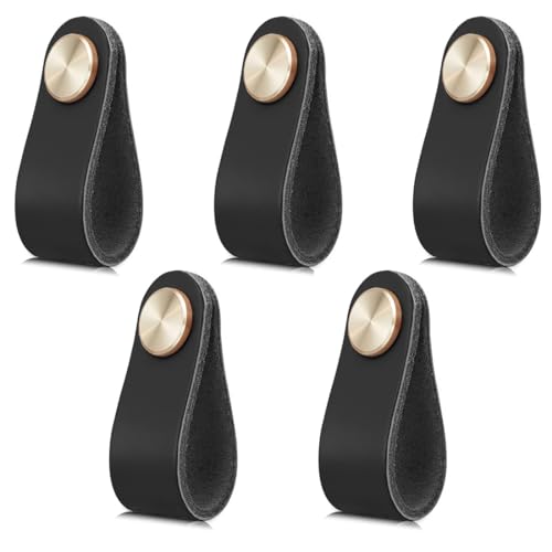 VIVIIHOO 5 Stück Ledergriffe für Möbel sind handgefertigte Schrankgriffe aus hochwertigem Leder, die eine stilvolle und moderne Note zu Ihren Möbelstücken hinzufügen. Diese Möbelgriffe eignen sich perfekt für Küchenschränke, Kleiderschränke, Kommoden, Schubladen und vieles mehr. Sie werden mit passenden Schrauben geliefert, sodass Sie sie einfach und schnell an Ihren Möbeln befestigen können.