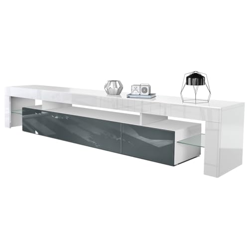 Das Lowboard ist in den Farben Weiß Hochglanz und Grau Hochglanz erhältlich, was ihm ein zeitloses und stilvolles Aussehen verleiht. Die hochglänzende Oberfläche ist nicht nur optisch ansprechend, sondern auch pflegeleicht und strapazierfähig. So können Sie Ihr Lowboard lange Zeit in einem makellosen Zustand halten.