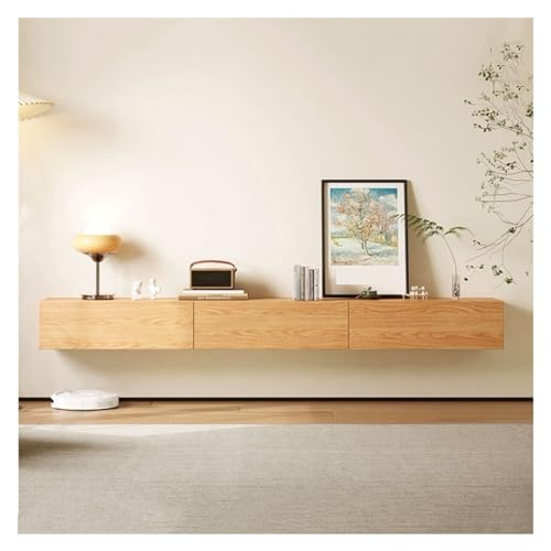 Ein schwebender TV-Regalständer ist eine elegante Lösung für die Aufbewahrung Ihres Fernsehers, ohne dass ein sperriger Schrank den Raum dominiert. Diese Art von Konsole schafft ein luftiges und offenes Gefühl in Ihrem Wohnzimmer und lässt den Raum größer und einladender wirken. Durch die Montage an der Wand wird auch der Boden frei gehalten, was besonders in kleinen Räumen von Vorteil ist.