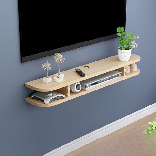 Das Medienkonsolenregal für das Wohnzimmer ist aus hochwertigem Holz gefertigt und bietet eine robuste und langlebige Konstruktion. Es ist in verschiedenen Farben und Stilen erhältlich, um zu Ihrem Einrichtungsstil zu passen. Das schwebende Regal für unter dem Fernseher schafft einen modernen und aufgeräumten Look in Ihrem Raum, da es den Boden frei hält und den Raum optisch vergrößert.