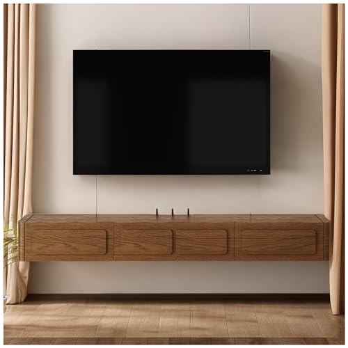Der WDSOPK 47-Zoll-Schwebe-TV-Ständer ist aus hochwertigem Holz gefertigt und in einem warmen Braunton erhältlich, der zu einer Vielzahl von Einrichtungsstilen passt. Mit einer Breite von 158cm bietet dieser TV-Ständer ausreichend Platz für einen Fernseher mit einer Bildschirmdiagonale von bis zu 47 Zoll. Die schwebende Konstruktion sorgt dafür, dass der TV-Ständer nicht zu viel Platz im Raum einnimmt und ein modernes, luftiges Ambiente schafft.