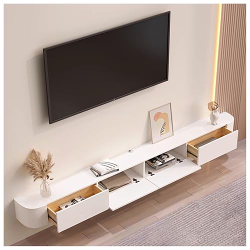 Ein weißer schwebender TV-Ständer ist eine elegante und moderne Möglichkeit, Ihren Fernseher stilvoll in Ihrem Wohnzimmer oder Schlafzimmer zu präsentieren. Dieser TV-Schrank mit Stauraum bietet nicht nur eine praktische Aufbewahrungslösung für Ihre Mediengeräte und Zubehör, sondern dient auch als dekoratives Element in Ihrem Zuhause.