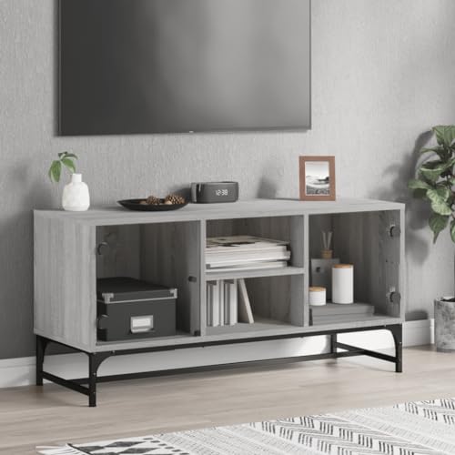 WKIEQACO Entertainment Centers & TV-Ständer, TV-Schrank mit Glastüren in Grau Sonoma ist eine großartige Ergänzung für jedes Wohnzimmer. Mit seinen Maßen von 102 x 37 x 50 cm bietet dieser TV-Ständer ausreichend Platz für Ihren Fernseher, Ihre Spielekonsole, DVDs und andere Unterhaltungsgeräte. Das elegante Design mit Glastüren verleiht Ihrem Raum einen modernen Touch und sorgt dafür, dass all Ihre Geräte ordentlich und sicher aufbewahrt werden.
