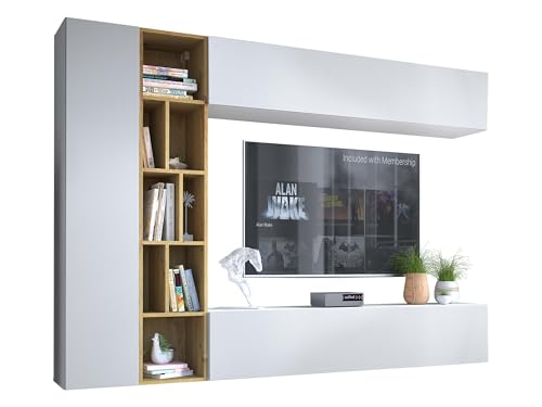 Insgesamt ist die Wohnwand Kodita eine praktische und ästhetische Lösung für das Wohnzimmer, die Stauraum und Design perfekt miteinander verbindet. Mit ihren verschiedenen Elementen wie Fernsehschrank, Schrankwand, Wandregal, Schrank und TV-Lowboard bietet sie ausreichend Platz für Multimedia-Geräte, Dekoartikel und persönliche Gegenstände. Dank des zeitlosen Designs und der hochwertigen Verarbeitung ist die Wohnwand Kodita ein Möbelstück, das nicht nur funktional, sondern auch optisch überzeugt.