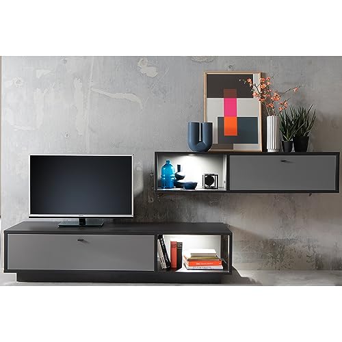 Ein modernes Wohnzimmermöbel Set in Grau kann einen Raum komplett verändern und ihm eine zeitgemäße Atmosphäre verleihen. Dieses 2-teilige Wohnwand Set besteht aus einem Lowboard und einem Hängeschrank in Anthrazit, die perfekt aufeinander abgestimmt sind und ein harmonisches Gesamtbild erzeugen.