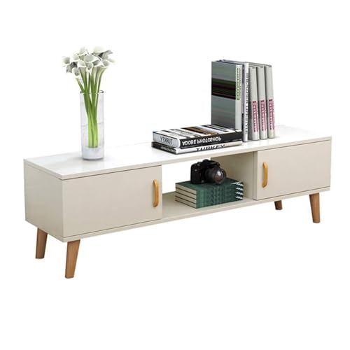 Der TV-Tisch ist aus hochwertigem Holz gefertigt und in einem eleganten Weiß gehalten. Mit seinen Maßen von 140x30x45cm passt er perfekt in jeden Raum und bietet genügend Stauraum für Ihren Fernseher, DVD-Player, Spielkonsolen und vieles mehr. Die Türen sorgen dafür, dass Ihre Geräte staubfrei bleiben und gleichzeitig vor neugierigen Blicken geschützt sind.