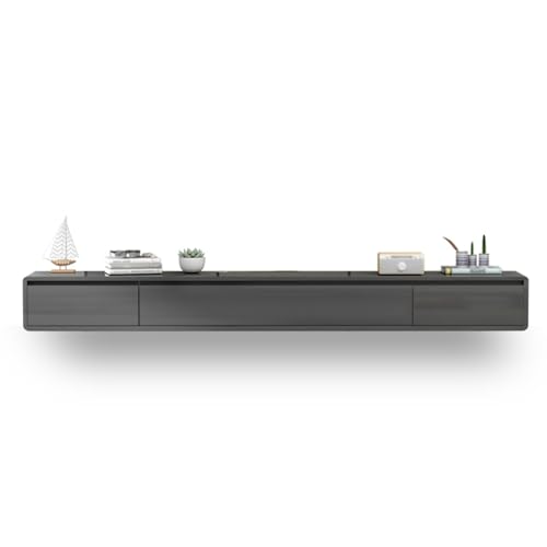 Der TV-Ständer ist wandmontiert und verfügt über Schubladen und offene Regale, die ideal zur Aufbewahrung von Fernbedienungen, Kabeln, DVDs und anderen kleineren Gegenständen geeignet sind. Die Schubladen bieten zudem die Möglichkeit, persönliche Gegenstände ordentlich zu verstauen und vor Staub und Schmutz zu schützen. Die offenen Regale sind ideal für größere Gegenstände wie Bücher, Vasen oder Dekorationsartikel.